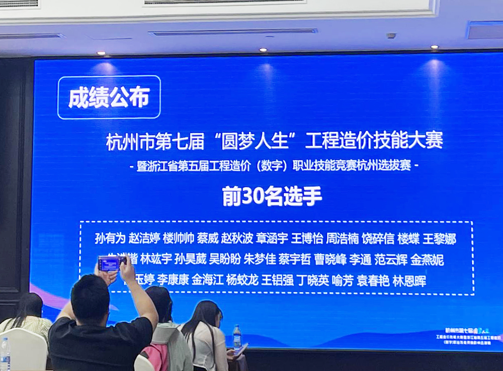 ★杭州市第七屆“圓夢人生”工程造價技能大賽暨浙江省第五屆工程造價(數字)職業技能競賽杭州選拔賽成績揭曉,我司二級造價工程師趙潔婷榮獲第二名。
