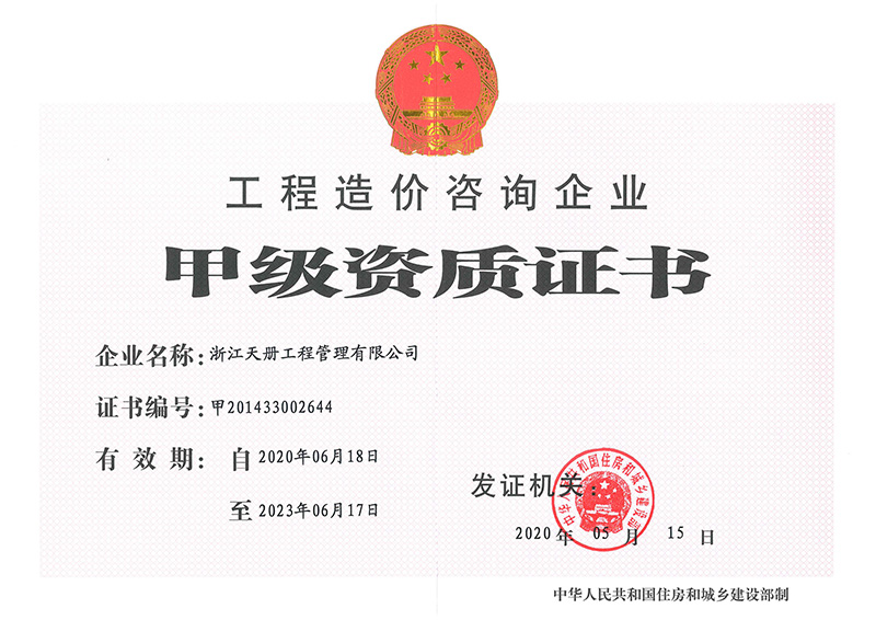 造價資質證書甲級